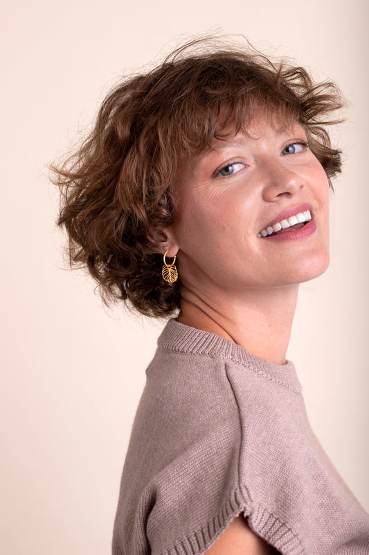 Calathea Leaves 24K Gold Hoop Earrings