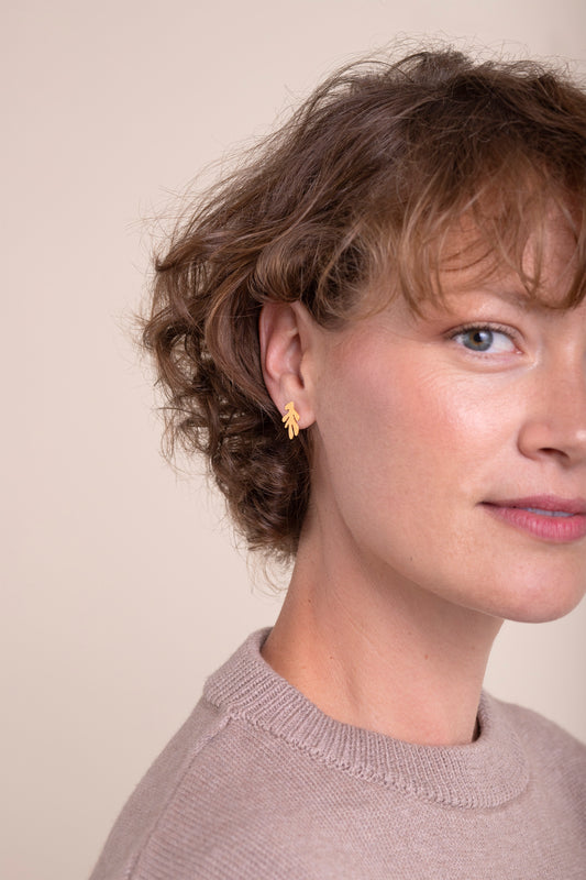 Mini Rustling Leaf 24K Gold Stud Earrings